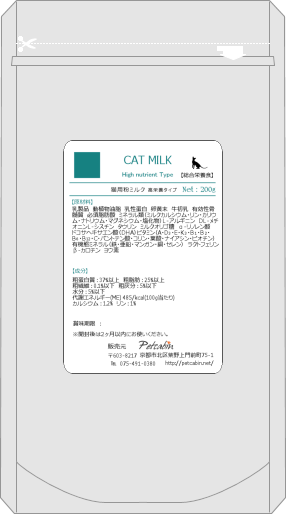 キャットミルク ■猫用ミルク(猫用) ・母猫の分娩前の栄養補給 ・母猫の母乳異常により仔猫にミルクを与えられない時 ・母乳が自力で飲めない仔猫の人口哺乳、育児用として ・多頭出産による母乳不足 ・虚弱子の栄養補給 ・母乳が必要な時期に親から離れた仔猫の栄養補助